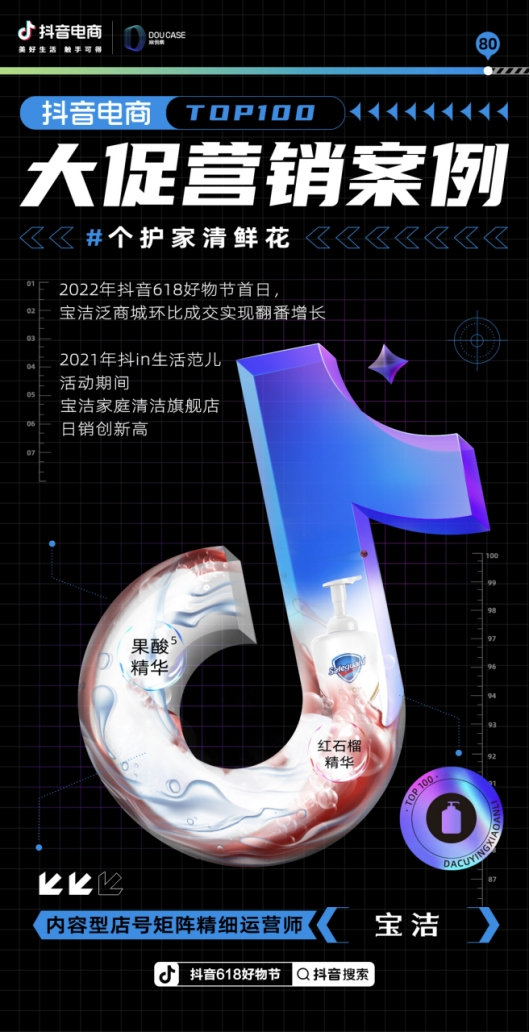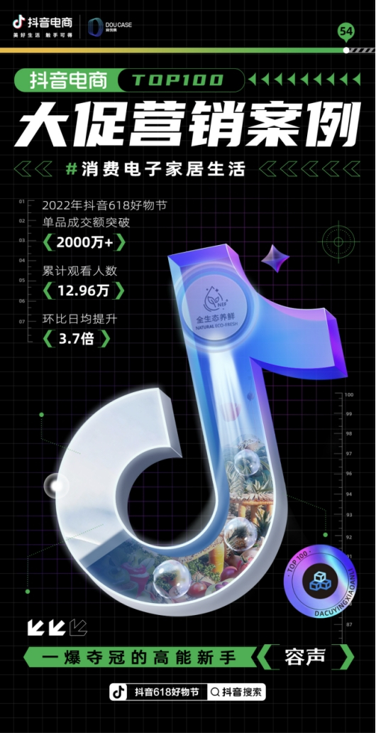 在抖音618好物节期间,抖音电商携手十大行业的百余个优秀商家、达人,推出#抖音电商Top100大促营销案例#。在这份成绩单中,抖音电商通过全方位展示不同行业的优秀“前辈经验”,不断激活平台生态和品牌影响力,持续助力更多商家、达人玩转兴趣电商新模式,读懂生意经。