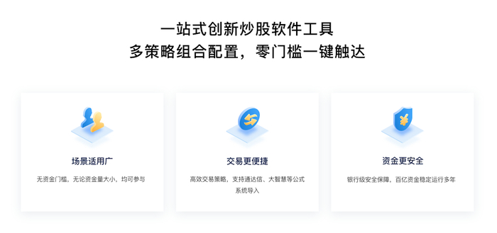 一是创新研发了低门槛量化交易平台,提升用户体验;二是打造全价值链条,构建了以DIY炒股机器人、区间套利和条件下单为核心功能,以自动打新、自动逆回购等作为辅助功能,以行情、资讯、社区、炒股比赛等为配套的软件产品体系;三是建立完善的用户体验管理体系,最大化提升用户体验和满意度。