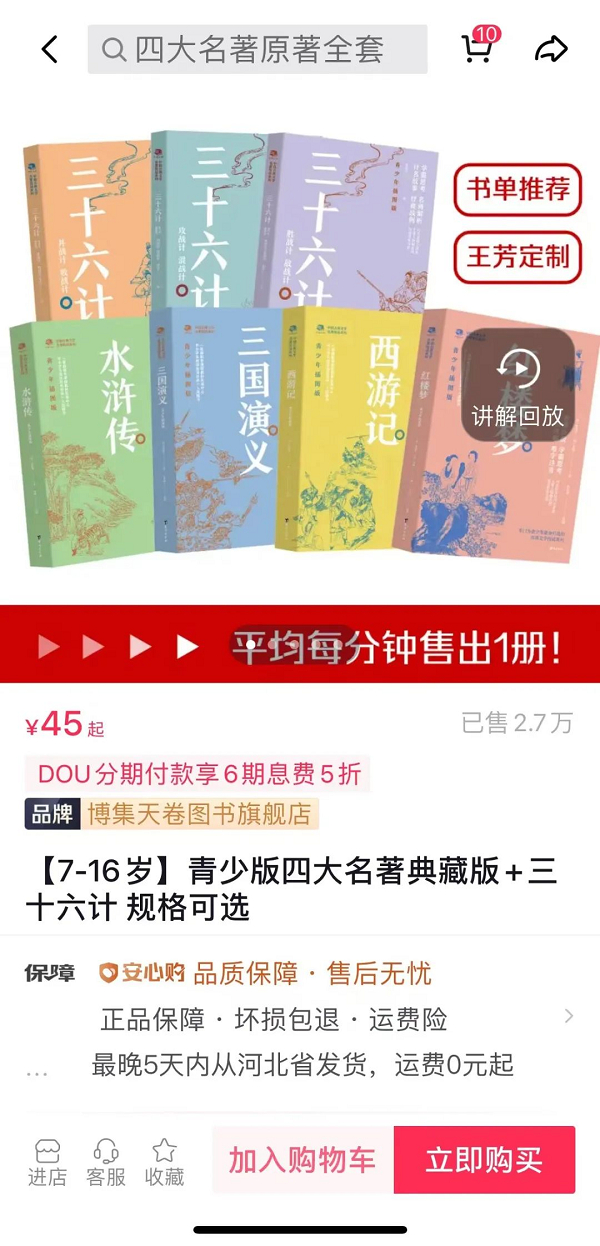 “相比传统销售方式,抖音电商更易在短期内推出爆款书。”吴时宇说道。而像同类产品较多、竞争压力更大的公版书,也能在抖音电商寻求到一线生机。