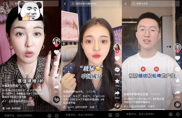 在抖音平台#了不起的中国成分 话题下,凌博士发起品牌定制话题#年轻从凌开始 ,并联动美妆圈层KOL及美妆科普达人构建传播矩阵,放大话题声量。相关领域达人围绕“玻尿酸抗老功效”的产品利益点,从使用心得,科研价值,专业科普等多角度对品牌产品进行宣传,全方位、立体地展示了凌博士品牌及产品,帮助品牌占领大众心智。