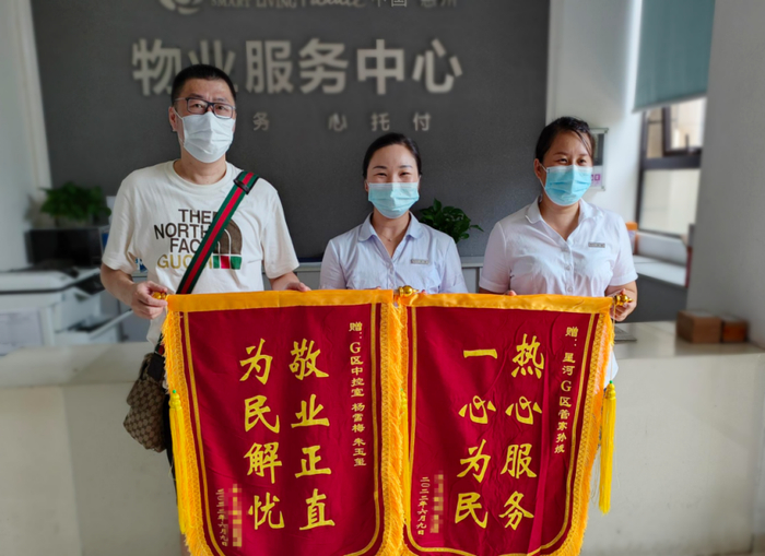 5月25日,惠州星河丹堤南区管家紫荆花正在例行日常巡查时,突然发现一业主家门有缝隙,怕是业主忘记关门了,于是上前敲门询问,却发现家中无一人,现场更是凌乱不堪,仿佛被盗贼洗礼了一般。管家立即联系业主,经过沟通及调查,原来是被租户故意为之,但业主身在外地并不知情,管家通过监控录下证据,并协助业主报警,全程帮忙跟进处理,之后还帮业主打扫屋内卫生,再帮其出租。6月13日,业主特地前往物业服务中心对管家紫荆花和安全监控室工作人员送上锦旗2面,表达感激之情。