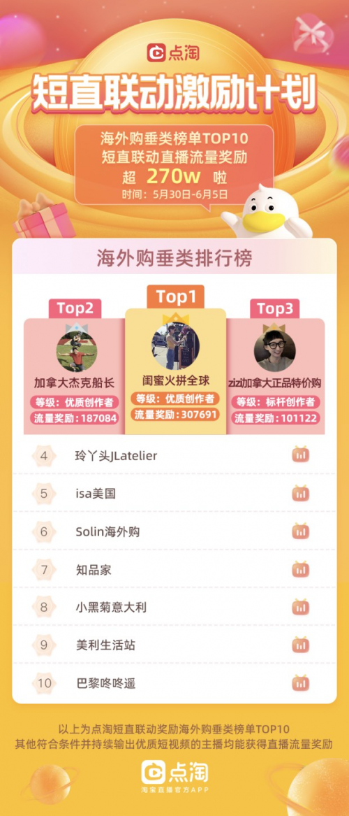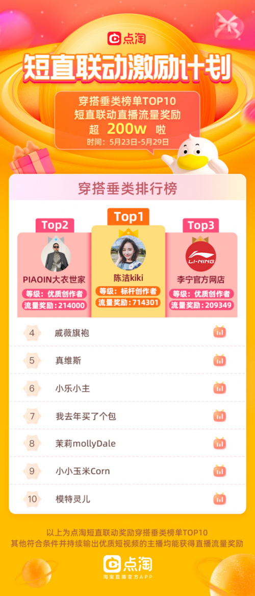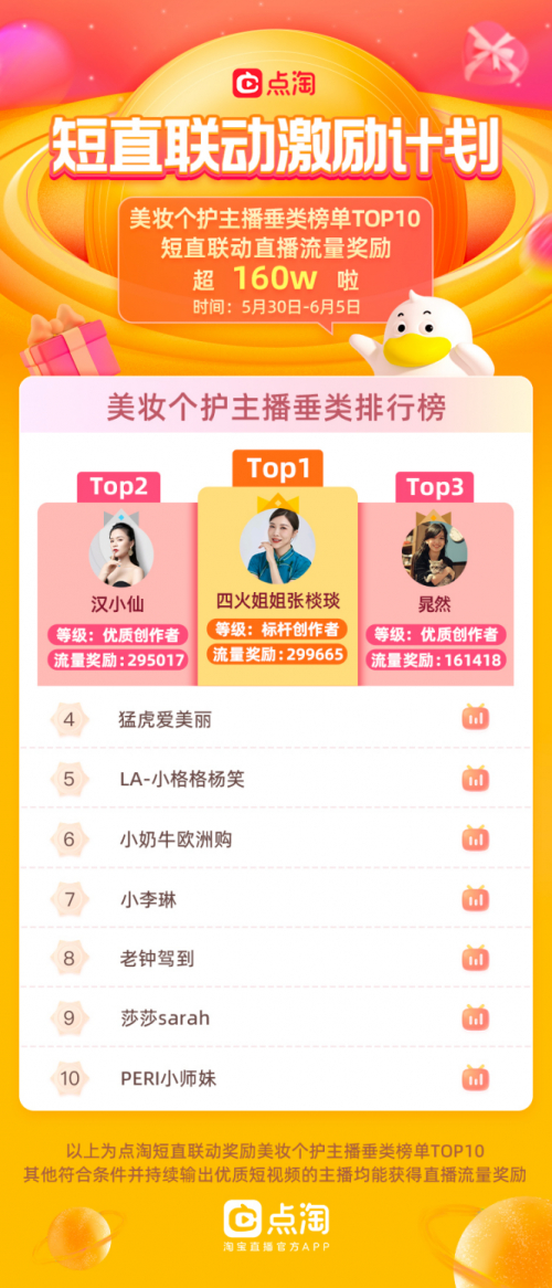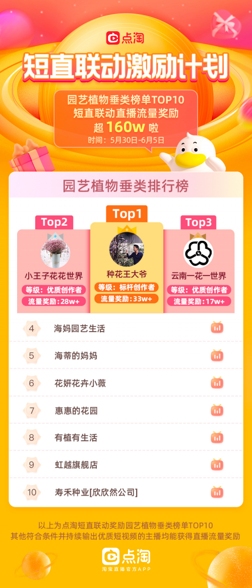 具体而言,星火计划将为每周发布3条原创视频的主播、商家发放直播流量奖励,按照视频播放量分档,主播、商家最高每周可获得3万+直播流量。点淘也通过“短视频涨粉榜”、“短视频种草榜”持续地评选,鼓励主播和商家积极运营短视频。