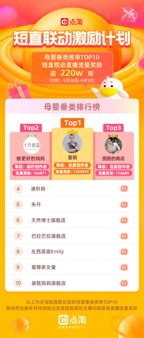 在母婴品类方面,主持人雷明入淘后,也通过点淘短视频输出育儿亲子教育内容,用内容做铺垫;