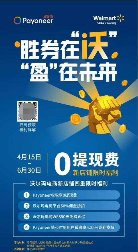 派安盈一直以来都是美国沃尔玛指定收款方,2021沃尔玛全球电商首次在中国招商,Payoneer派安盈也成为Walmart指定的官方合作伙伴,可信度是100%保证的。