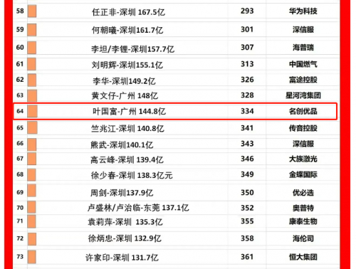 名创优品MINISO叶国富上榜2022年新财富500富人榜单