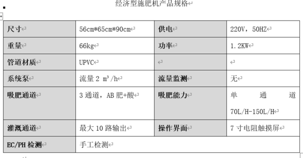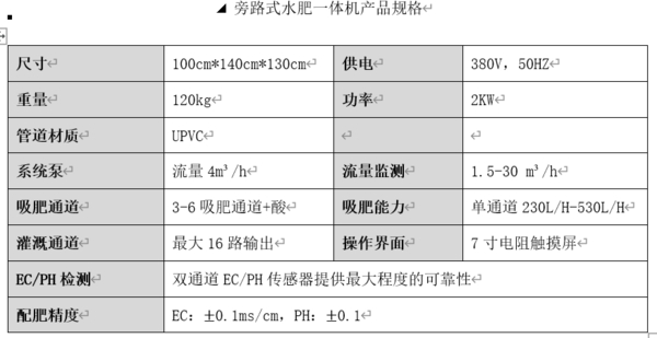 我单位研发的水肥一体机有三种类型,分别为在线式水肥一体机、旁路式水肥一体机和经济型水肥一体机,可以根据用户种植面积和所需精确度个性化定制。