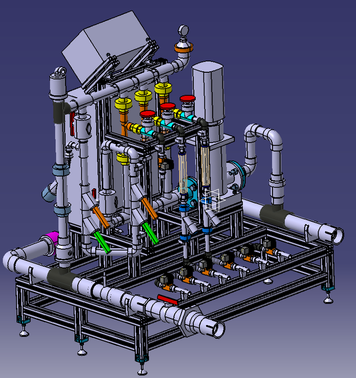 吸肥系统由4个吸肥文丘里通道和1个酸通道组成,每个文丘里通道吸肥口都有一个电磁阀、流量计和过滤器。
