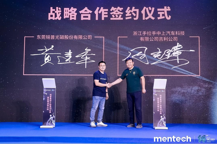 在此次发布会的最后,东莞铭普光磁股份有限公司分别与苏宁易购集团股份有限公司消费电子公司、香港劲伟集团股份有限公司、浙江手拉手中上汽车科技有限公司(吉利控股公司)达成长期战略合作。此次签约合作意味着铭普集团to B+to C双业务品牌战略正式开启,未来可期!