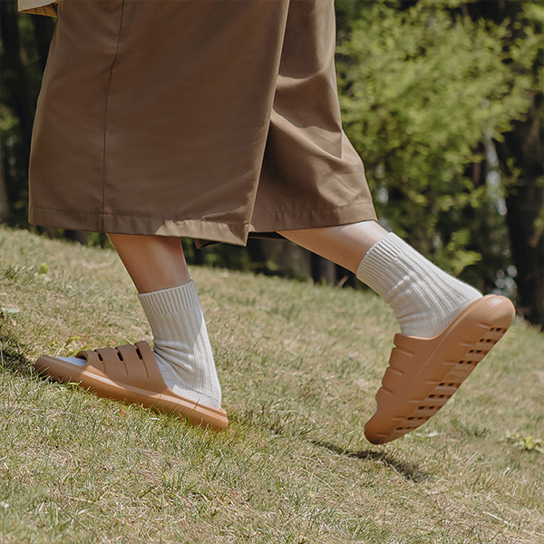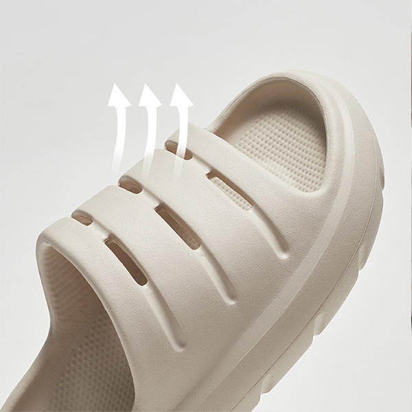 一如既往的EVA环保材质,没有刺鼻气味,不易发黑发臭,不易残留污渍汗液,随手一擦干干净净。露营难免弄脏鞋子,这款鞋的易清洗性能非常适合露营穿着,解放“懒癌”患者。鞋面六组横向透气孔,天再热也能轻松透气不闷热,让双脚自由呼吸。