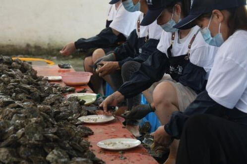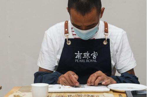 南珠宫珍珠养殖基地中期开贝和年度插核工作顺利完成