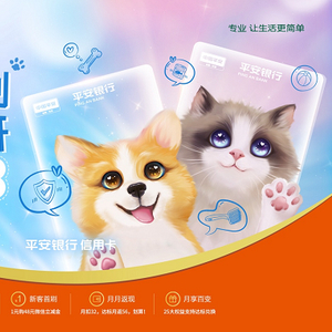 平安悦享白白金卡星光喵/星光汪版,22年年底前核卡新户尊享终身免年费,卡面颜值吸引眼球,星眸闪耀、萌爪点缀,超萌星光喵和星光汪形象跃然卡面,萌力十足。权益方面,新卡客户可优购萌宠关爱权益包,畅享全年24小时无限次在线问诊、最高1.5万元宠物意外疾病保障及500元第三者医疗保障;新户完成任务享最高96元微信立减金,月月享萌宠关爱返现金,全年最高返672元;更有机会免费抽、0元秒爆款萌宠好物……超多活动与实惠福利,让年轻人的养宠生活省钱省时又省心。