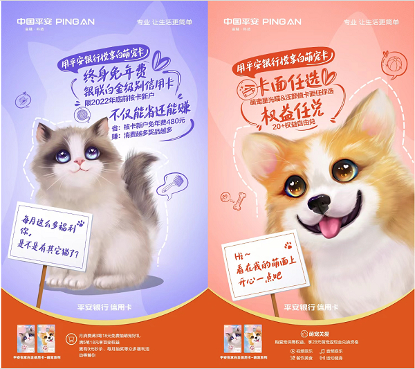 此次平安悦享白萌宠主题卡上市,以超高颜值卡面、实用的萌宠权益包和新颖丰富的青年平台活动,为年轻养宠人士构建爱宠生活新方式。同时,作为悦享白金卡适应年轻客群个性化、养宠消费需求的细分深耕,收获更多年轻人的喜爱,也让平安银行信用卡年轻化的品牌形象更加深入人心。