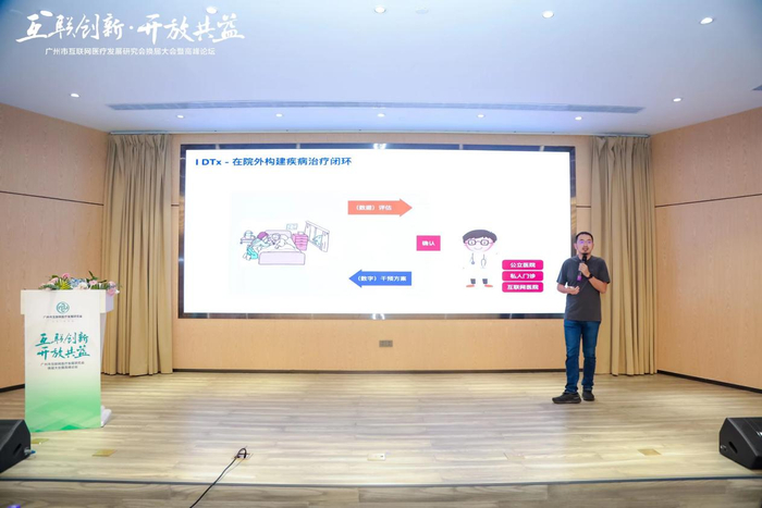 会中,广州市冰片健康科技有限公司创始人CEO姜海波主持DTx超级平台发布时表示:数字医疗作为一种现代化的医疗方式,把计算机技术、信息技术应用于整个医疗过程的一种新型现代化的医疗方式,是公共医疗的发展方向和管理目标。数字医疗设备的出现,将大大丰富医学信息的内涵和容量。