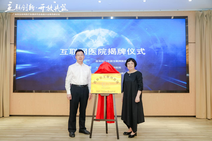 本次峰会的最后,为推动新一代信息技术与医疗服务深度融合,大力发展远程医疗和互联网诊疗,建设智慧型互联网医院,医和你副总裁王遂春和钱德英教授为三家互联网医院举行揭牌仪式,他们分别是医和你门诊部互联网医院、方舟健客互联网医院、冰片科技德医方圆互联网医院。
