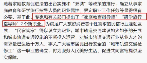 6月14日,18个新职业信息向社会公示,其中包括家庭教育指导师。