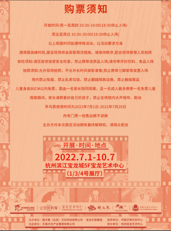 从《铁臂阿童木》到《哆啦A梦》再到《灌篮高手》读者可以近距离观看动漫大师原稿,身临其境感受赛璐璐的工作原理。2022年7月1日--10月7日,由“国文聚(北京)文化科技有限公司”发起,联合指导单位“中国文物交流中心”、出品单位“天禹文化产业集团有限公司”、承办单位“杭州宝龙艺术中心”将为广大群众匠心呈现“永恒的青春——经典动漫原画展”。