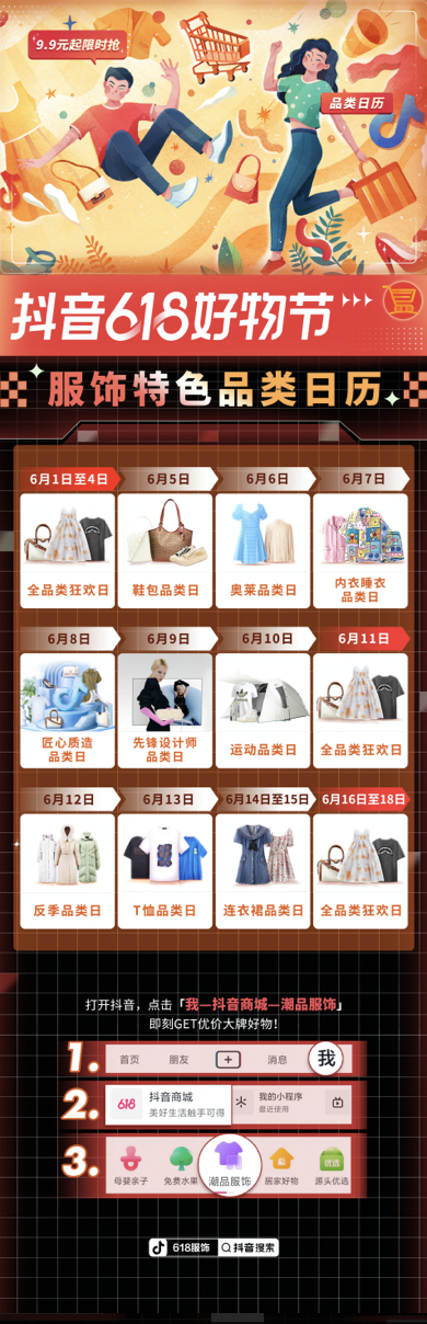 多元场景种草、多重资源扶持、多维玩法叠加,抖音电商服饰行业希望用这样一套618全链路营销组合拳帮助商家扩大品牌声量、提振大促销量,助力更多服饰品牌在抖音实现品效销的增长爆发。未来,抖音电商服饰行业将继续通过满足用户对美好生活的需求,为品牌搭建新的消费桥梁,提升触达效率,帮助品牌收获新的增长机遇,完成品效销的下一次突破。