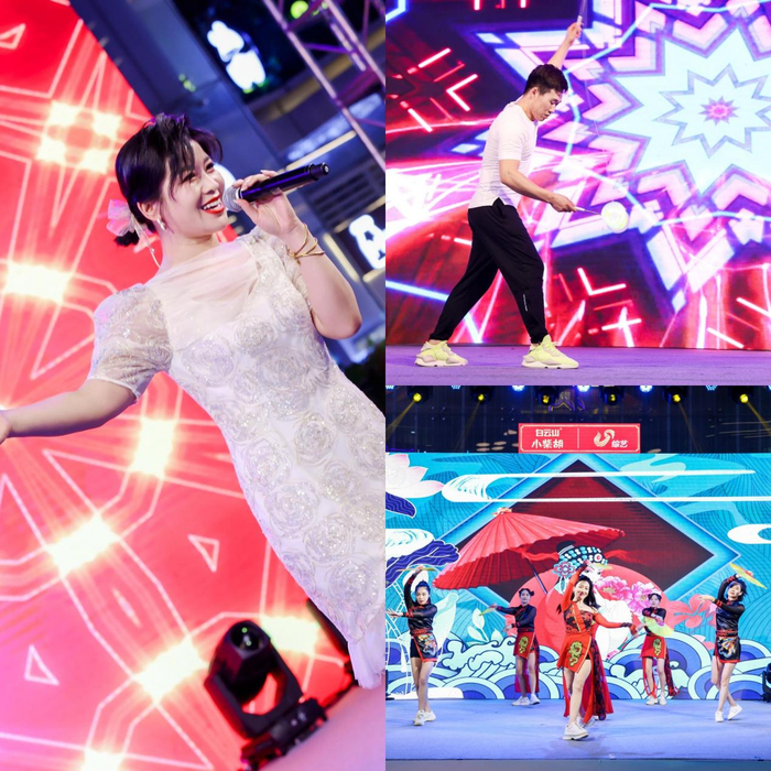 从山东电视综艺频道走出来的明星艺员们也带来了精彩绝伦的表演。惊险刺激的非遗空竹节目,吊足了观众的胃口;热烈欢快、节奏鲜明的流行歌曲将现场氛围推向高潮。