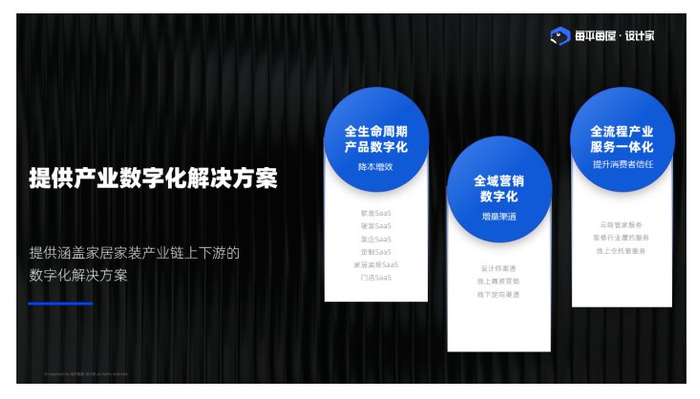 作为深耕阿里巴巴商业生态的家装家居产业数字化解决方案提供商,每平每屋设计家以科技创新为驱动,从家装家居实际业务场景出发,聚焦产业数字化基础设施建设,为产业上下游参与者提供全生命周期数字化产品,助力商家实现数字化升级转型,获得可持续增长。