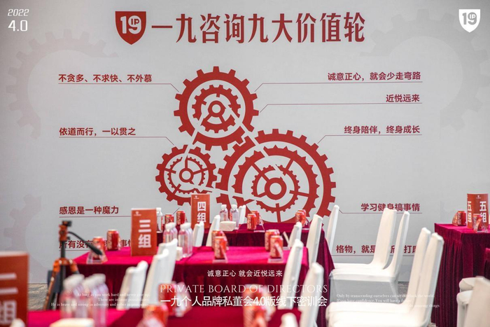 密训会最后,王一九为新私董们授牌、合影,王一九老师会场内的布置,处处都在向私董们传递诚意正心的价值观,诚意正心做事,就会近悦远来。