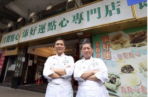 麦桂培师傅及梁辉强师傅在中国香港旺角创设了第一间添好运点心店