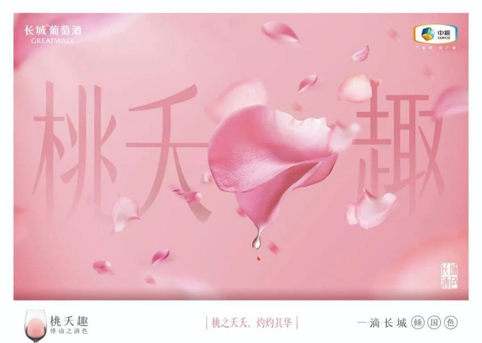 长城融合了中国传统文化,重新定义了葡萄酒的颜色标准。如取自中国古代第一部诗歌总集《诗经》中《周南·桃夭》的“桃夭趣”,不仅描摹出颜色如桃花般的娇媚,同时也传递出一种和谐欢乐的氛围。此外,长城将“情绪”纳入酒色的命名标准中,融入了现代性的创新理念,以“柳色悠“为例,史游《急就篇》中提到:“郁金半见缃白䋤,缥綟绿纨皂紫硟”,“柳色悠”意指蕴含着勃勃生机,传递出一种悠然自在的情绪。