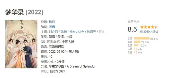 作为2022年现象级热剧,《梦华录》贡献了无数热搜。开播第十天,播放量就突破15亿,豆瓣评分一度飙升至8.5分。这部电视剧改编自关汉卿元杂剧《赵盼儿风月救风尘》,讲述了三个女人经历各种困境,携手勇闯东京,在皇城司指挥使顾千帆的帮助下,将永安楼变成东京最大酒楼的故事。