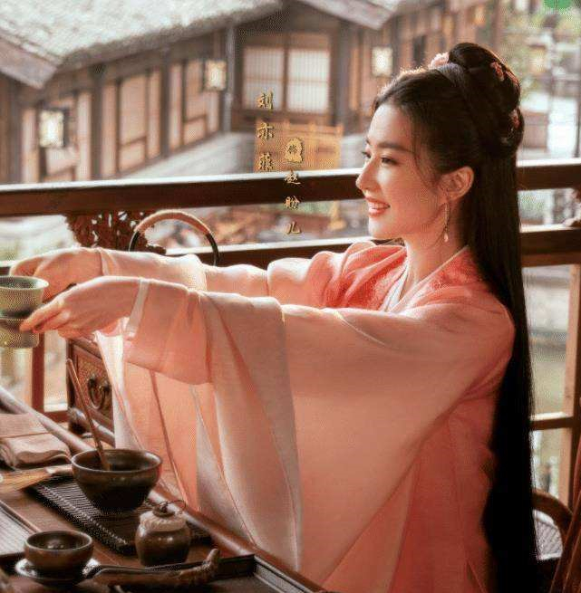 在剧中前期,赵盼儿(刘亦菲 饰)是钱塘茶铺的卖茶人,为了体现出市井感,服装的面料以棉麻为主,清淡朴素,恰好和刘亦菲清丽脱俗的气质完美契合,在配上江南水乡的环境,有种浑然天成的美。而后期赵盼儿经营半遮面茶馆时,作为一个老板娘,服饰则以上下裙款式为主,纤细的皓腕轻转罗扇,脉脉含情的双眸随着流转,尽显婉约柔美之态。