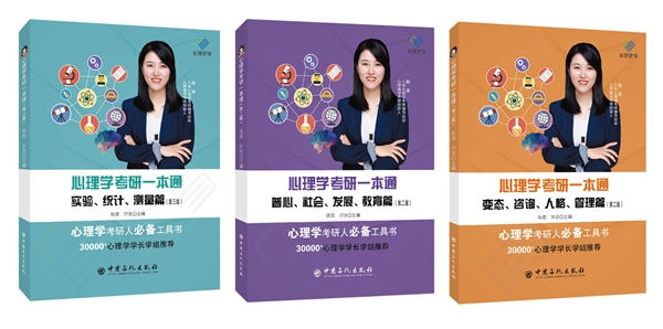 《一本通》系列基本覆盖了312统考和347专硕的所有科目,全套书分为三本:第一本是紫色封面的普心、社会、发展、教育篇;第二本是蓝绿色封面的实验、统计、测量篇;第三本是橙色封面的变态、咨询、人格、管理篇。可以说它的适用性非常广泛!不仅如此,它在对各个科目的知识点精讲凝练外,更汇集了各大高校心理学考研历年真题,是不可多得的真题宝库。