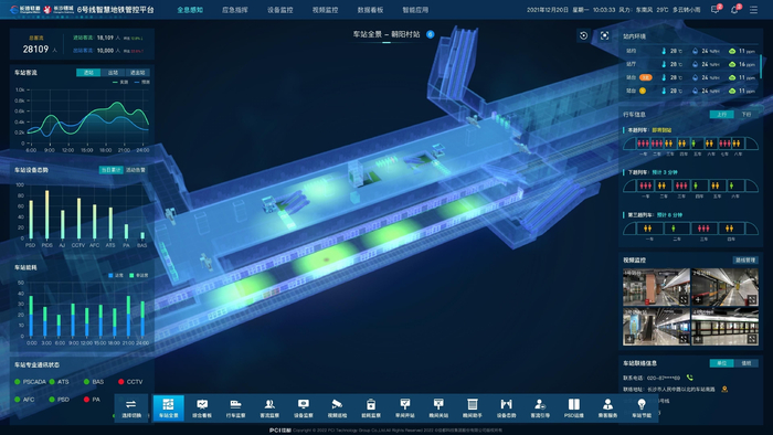 轨道交通进入快速发展期,新线路建设对高效管理和有序规划线网资源有着显著的需求。作为长沙首条智慧地铁,6号线首次引入以佳都科技华佳Mos为底座的智慧地铁管控平台,基于数字孪生技术,构建了完整的真实的数字平行世界,将车站数据还原到数字三维空间,同时展示客流量、车站热点客流密度、能耗、列车、站内设备的实时状态,实现了车站和线路的运行状态可视化、运营管理自动化。
