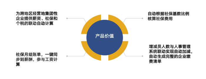 为跨地区经营地集团性企业提供薪资、社保和个税的联动自动计算,自动根据社保基数比例核算社保费用,增减员人数与人事管理系统联动实现自动加减,自动生成完整的企业缴费清单,社保月结账单,一键同步到薪酬,参与工资计算。