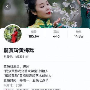 今年45岁的龙宝玲曾是安庆黄梅戏剧院的演员,也在艺术学院进行黄梅戏教学。在2007年首届中国黄梅戏青年演员大赛中,她还曾获得“黄梅之星”的称号。2015年起,她开办黄梅戏公益学堂,免费教黄梅戏爱好者唱戏,几年间已培训了4000多人。后来,她又将学堂搬进了抖音直播间。目前,龙宝玲已抖音吸引近15万粉丝关注。