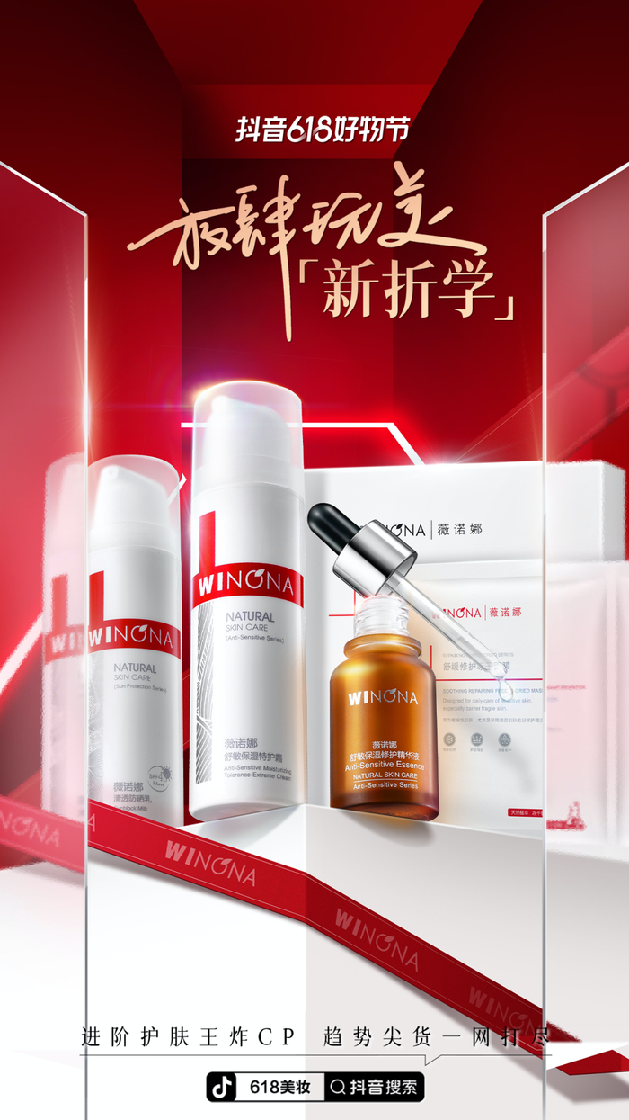 充分预热聚焦关注目光。 达人直播是实现可视化种草目标的直接方式。在抖音618美妆行业 “放肆玩美·新折学”活动前期,薇诺娜联手大量达人进行专场直播,大范围种草的同时还收获喜人战绩。其中,在达人郭小胖的抖音电商开新日专场直播中,新品薇诺娜蓝铜胜肽精华液就创造了1小时即售罄的记录;特护霜以礼盒形式亮相刘耕宏直播间,更是引发一波购买热潮,为618集聚了关注目光。