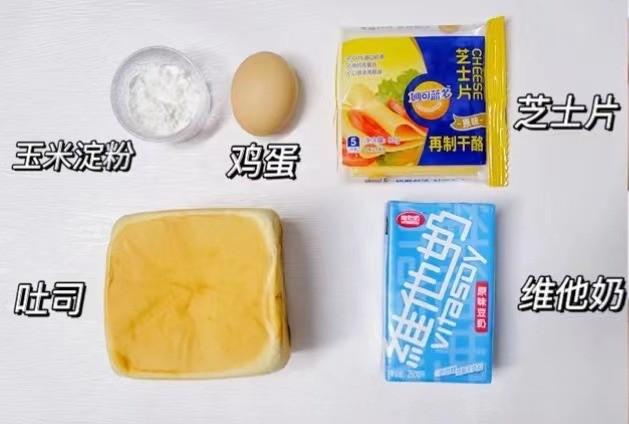 准备食材:维他奶原味豆奶一盒、吐司1个、鸡蛋1个、芝士1片、玉米淀粉15克。