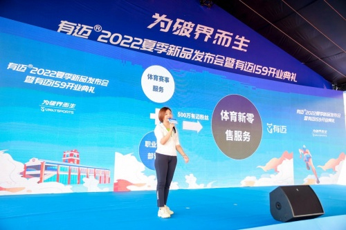 在发布会的重磅环节,有迈体育董事长陶婷婷正式官宣推出体育新零售品牌——有迈®。有迈以为有迈运动爱好者提供符合他们需求的产品与服务为初心,布局体育新零售业务,打造体育新空间,汇聚人货场,构建有迈体育服务生态圈,为社会、为行业、为每一个运动爱好者带来可靠的体育产品与服务的坚守。