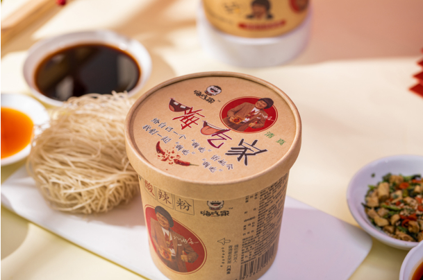 为了避开与当时主流产品的正面竞争,嗨吃家不仅在包装上放弃光面亮色,选择牛皮纸外壳,还直接走线上销售的通道,通过社群营销、直播带货和社区团购等方式向食客销售桶装方便酸辣粉,在酸辣粉市场崛起大势的加持下,嗨吃家也迅速成为酸辣粉界的“网红产品”和新势力。