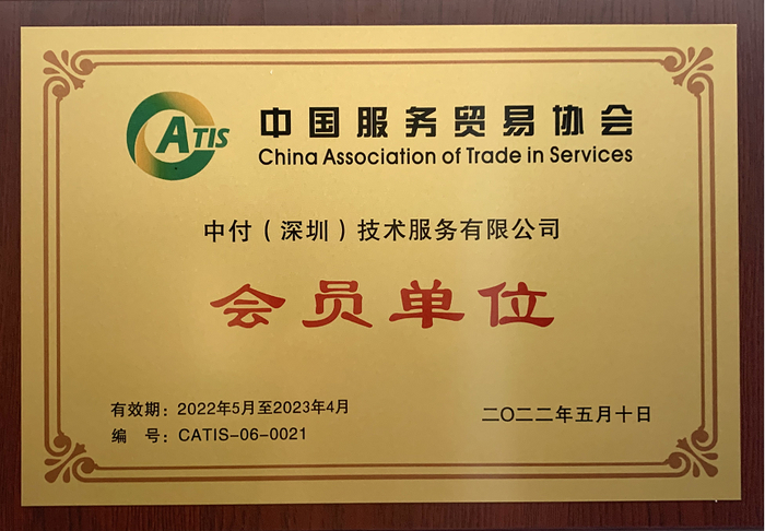 近期,中付(深圳)技术服务有限公司正式成为中国服务贸易协会会员单位。