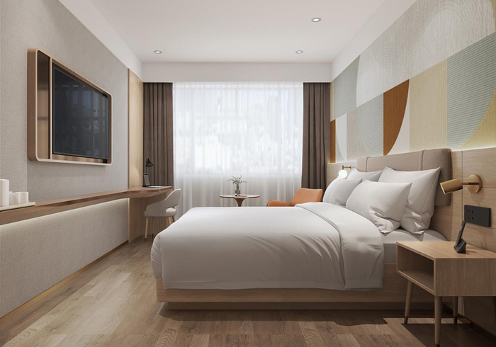 定位于新一代精致商旅连锁酒店,艺选安來以现代简约的设计、全球甄选的用品,为当代商旅人群营造越级的出行居住体验。酒店在设计上将实用、自然与雅致感融入每个角落,利用线条型设计化繁为简,呈现简约利落的空间感,客房配置国际标准速热卫浴、一体化智能设备、品质床垫、亲肤布草等,打造舒适温馨的安睡客房,高性价比、堪比中高档酒店的住宿体验,深受年轻消费者青睐。