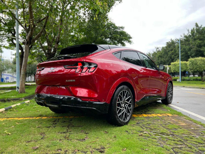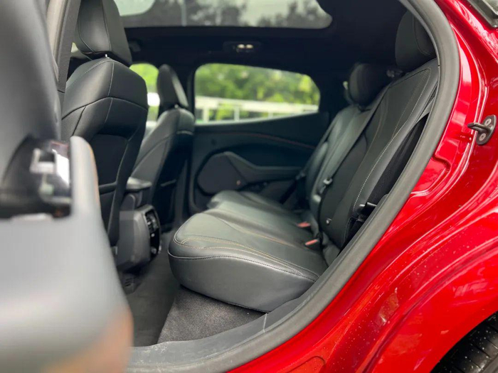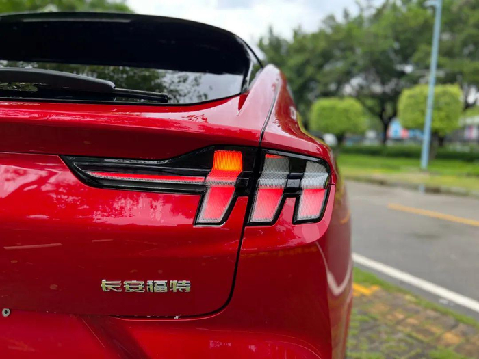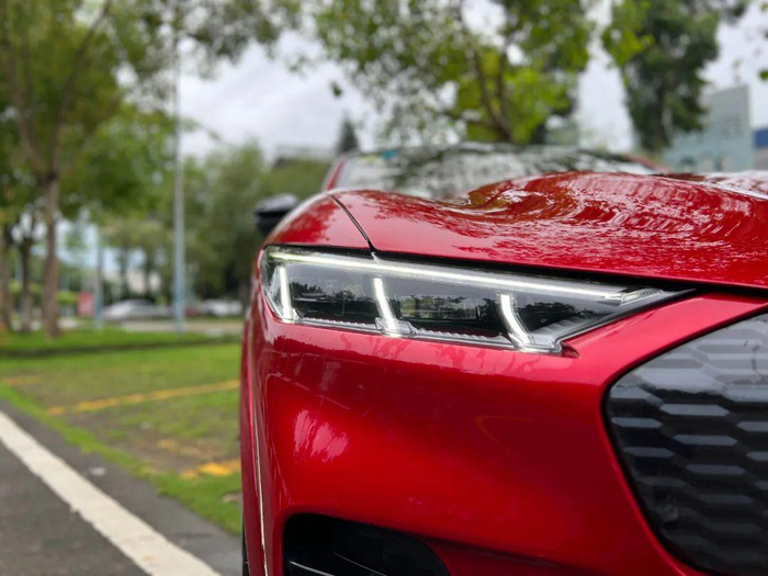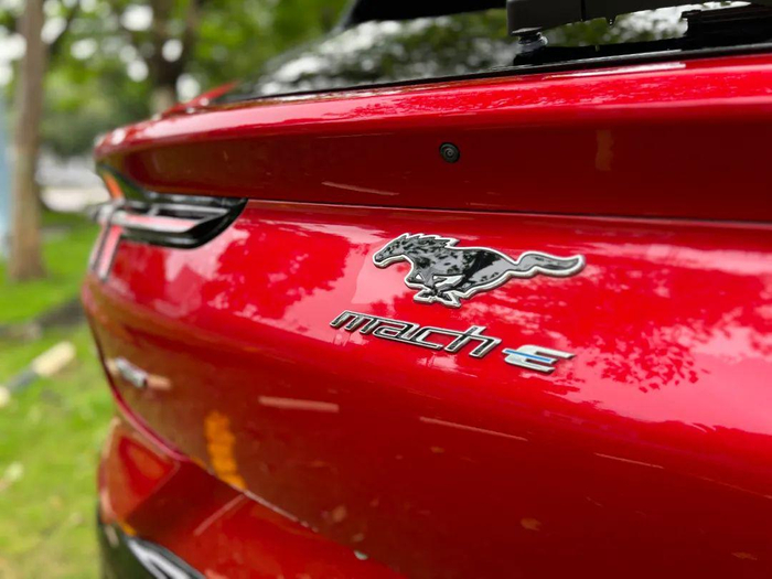 Mach-E的外观自带Mustang滤镜,颜值与回头率毋庸置疑。而这次试驾的GT版更是在车身及内饰上,都有专属的GT标志,同时20寸轮毂,定制红色卡钳,玫瑰金B&O音响等也是GT版车型独有的配置,是让人一眼区别于其他版本车型的细微之处。