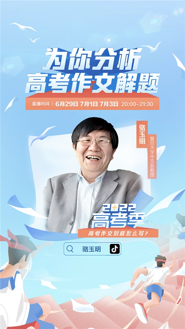 据悉,此次围绕高考作文的讲座是骆玉明的抖音首次直播,接下来在7月1日和7月3日晚八点,骆玉明还会围绕“如何处理对立的观点”以及“文脉的简明与充实”对高考作文进一步阐述。