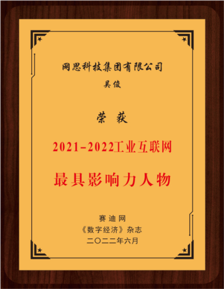 网思科技总裁吴俊先生作为工业互联网行业领军人物,以其前瞻性的思维及积极创新、勇于开拓的精神荣获“2021-2022 工业互联网最具影响力人物”奖项,与网思科技一同获得人物类荣誉的还包括浪潮云、用友网络、金蝶集团等行业翘楚。