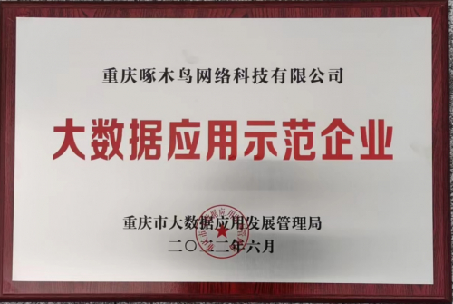 2022年6月,一站式数字化服务品牌啄木鸟家庭维修所属企业重庆啄木鸟网络科技有限公司荣获由重庆市大数据应用发展管理局颁发的大数据应用示范企业荣誉。