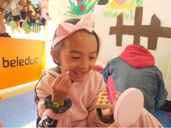梅梅来自于云南省南部的偏远乡村,这里群山环绕、绿意葱葱,空气中弥漫着稻田的清香。但也因为地形的限制,当地经济发展相对落后,玩教具资源相对匮乏。像每个小女孩一样,梅梅的心里也住着一个小公主,她想要用自己喜欢的各种颜色打扮自己,也期待用形态各异的可爱贴纸装点房间。这样公主梦,在Hape“未来希望幼儿班”项目运行之后得到了实现。