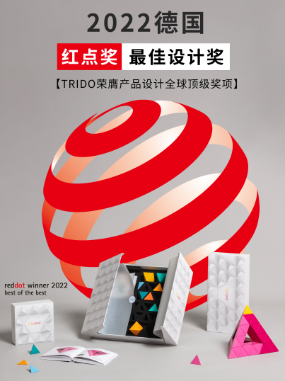 因其前卫设计理念,今年年初,TRIDO从上千件产品中脱颖而出,一举斩获世界顶级工业设计奖——德国红点奖“最佳设计大奖”(Red Dot: Best of the Best)。该奖项被誉为设计界的奥斯卡,是世界顶级工业设计奖。每年,来自不同国家地区、拥有不同文化背景、身处不同专业领域的50多名专业国际评审委员都将对申报产品的美观、功能、智能等创意多维度进行严格评估分析,推选出最优秀佳作。历年来,苹果的Apple Watch系列、蔡司的数码相机、法拉利的跑车、LG的冰箱等都是红点奖曾推荐过的获奖作品。
