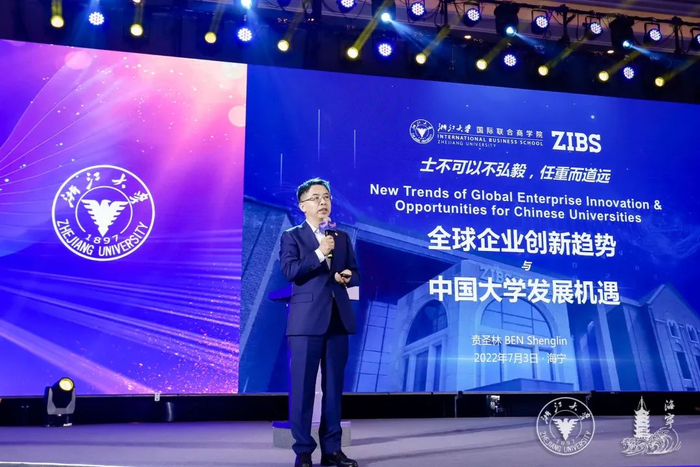 浙江大学教授、浙江大学国际联合商学院院长贲圣林,作了题为《全球企业创新趋势与中国大学发展机遇》的主旨演讲。