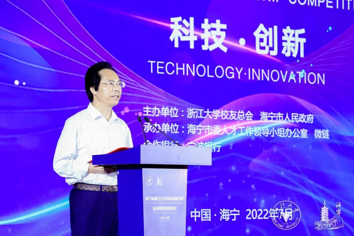 7月3日,第六届浙江大学校友创业大赛总决赛暨颁奖仪式在浙江海宁举行。浙江大学副校长黄先海,中共海宁市委常委、组织部长吕忠飞,浙江大学发展联络办公室主任、校友总会秘书长沈黎勇,发展联络办公室副主任、校友总会常务副秘书长黄任群,浙江科发资本管理有限公司董事长、杭州浙大校友会会长、大赛评委会执行主任陈晓锋,网新科创产业发展集团有限公司董事长、大赛组委会执行副主任兼执行秘书长张四纲,宁波银行杭州余杭支行行长应迪庆,海宁市人力资源和社会保障局党组书记、局长吕林峰等出席仪式。浙江大学上市公司企业家校友代表,校友创业大赛总决赛的评委和参赛代表,关注创新创业的企业家、投资人、政府代表、媒体记者等以及来自浙江大学相关院系和各地校友会代表共同见证。