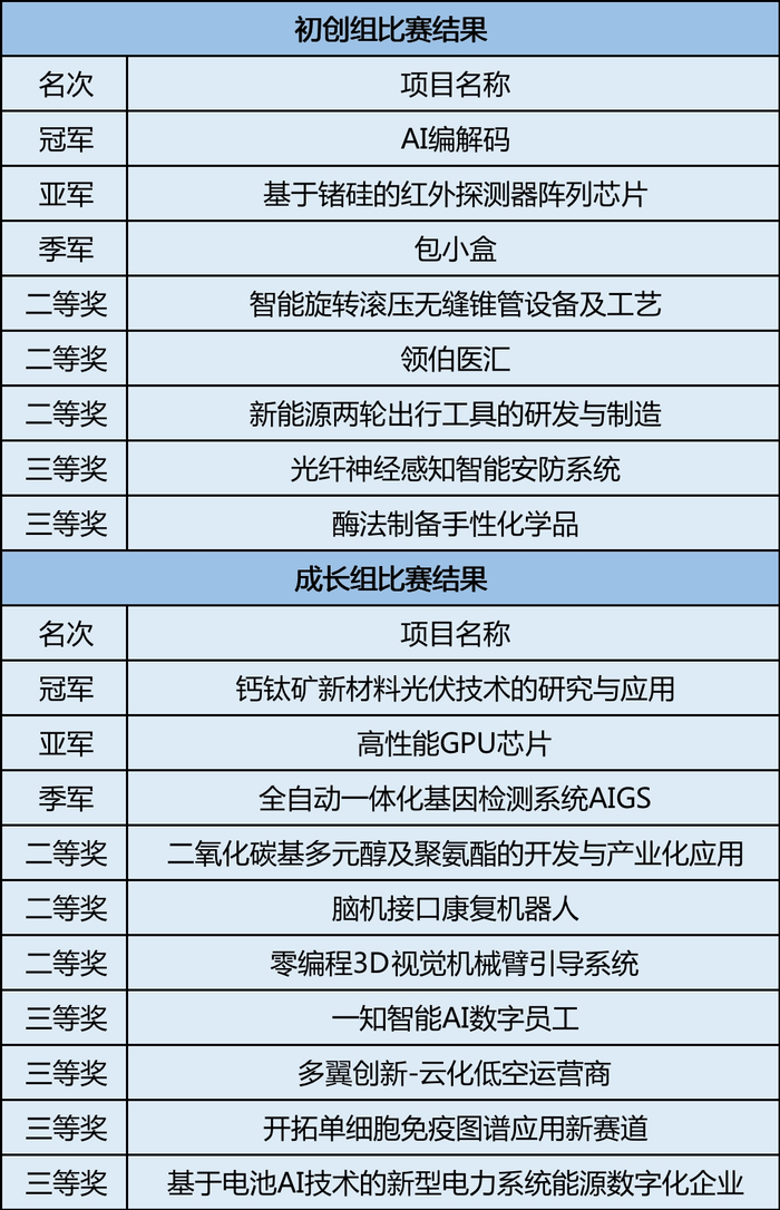 本次总决赛共有18个项目入围,经过评委的严格评审、现场公开打分,最终评选出以下获奖项目。