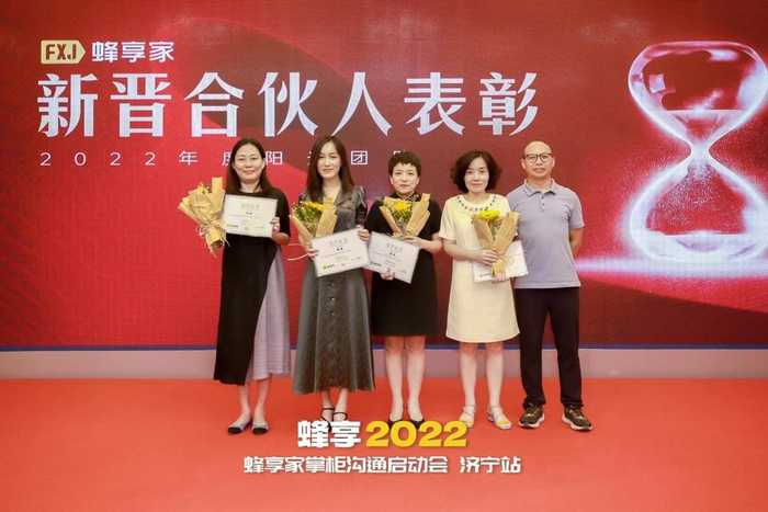 在活动现场,蜂享家对多位新晋合伙人进行表彰。随后,薛宁、薛凤景、任晓霞、磊哥、雪寒、珣姐等优秀掌柜代表上台分享加入蜂享家以来的收获与感受。
