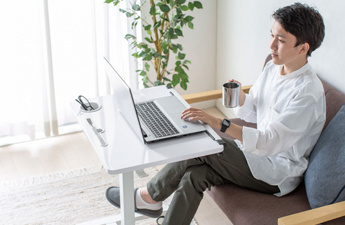山业推出一款既能满足坐站交替,又无需太挑环境的人体工学多功能升降桌,可以在卧室的角落放置,也可以轻松搬动到沙发旁。只要选对家具,小户型照样也能舒适办公。
