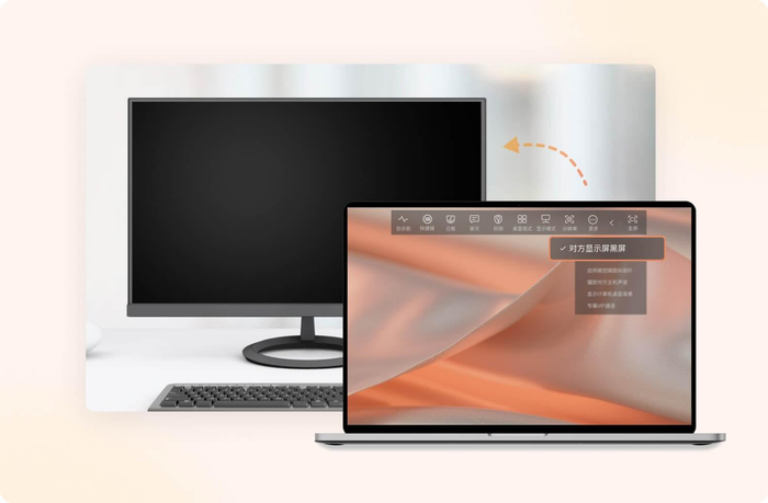 值得一提的时,在“隐私设置”中设置「启用黑屏」,远程接入后被控主机桌面就会强制黑屏显示,以此来保护我们远控中的隐私操作,防止他人偷窥。